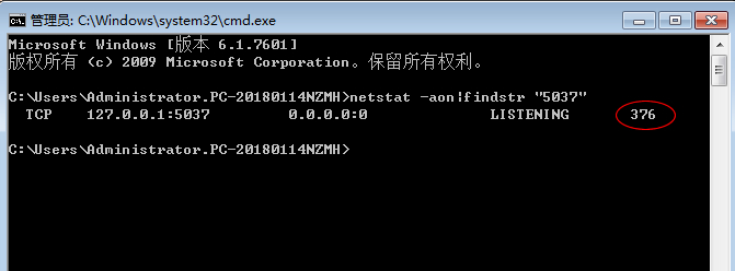 netstat -aon|findstr "5037"